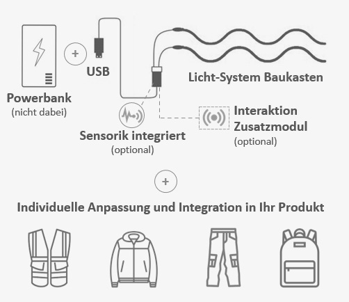 Mit LED-Leuchtsystemen für Bekleidung oder weitere Ausrüstung, wie beispielsweise Helme, Schulranzen oder Arbeitskleidung werden Menschen schon von Weitem besser erkennbar.